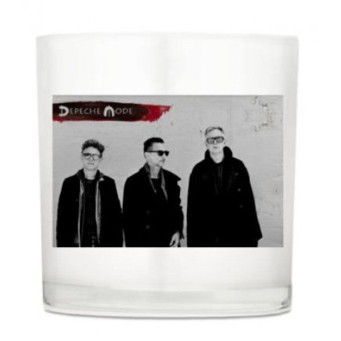 Bougie Depeche Mode personnalisée avec photo. Un photophore en verre résistant et 45 heures de temps de combustion.
