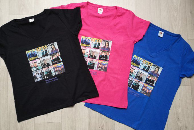 T-shirt anniversaire avec diverses couvertures de magazines (homme ou femme) - Diverses tailles et couleurs - Photos avant.